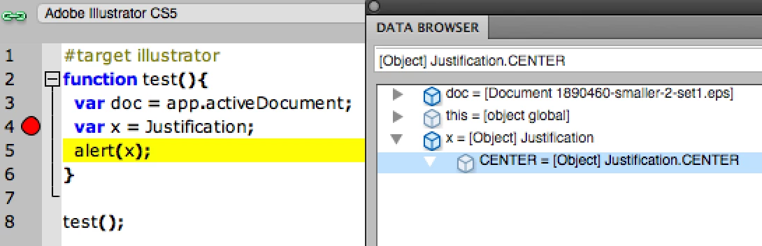 Here is the thing, we have plenty of these objects available to us, and alerting the value of a textFrame.paragraphs[0].paragraphAttributes.justification will yield something like "Justification.CENTER".