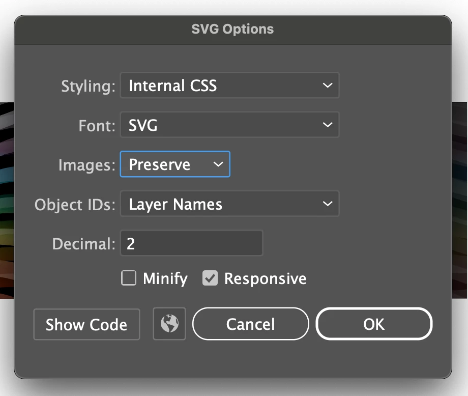 I'm not sure what this process is, so am not sure how to look it up. I'm working in CMYK but want to export to print, or as RGB SVG for web.