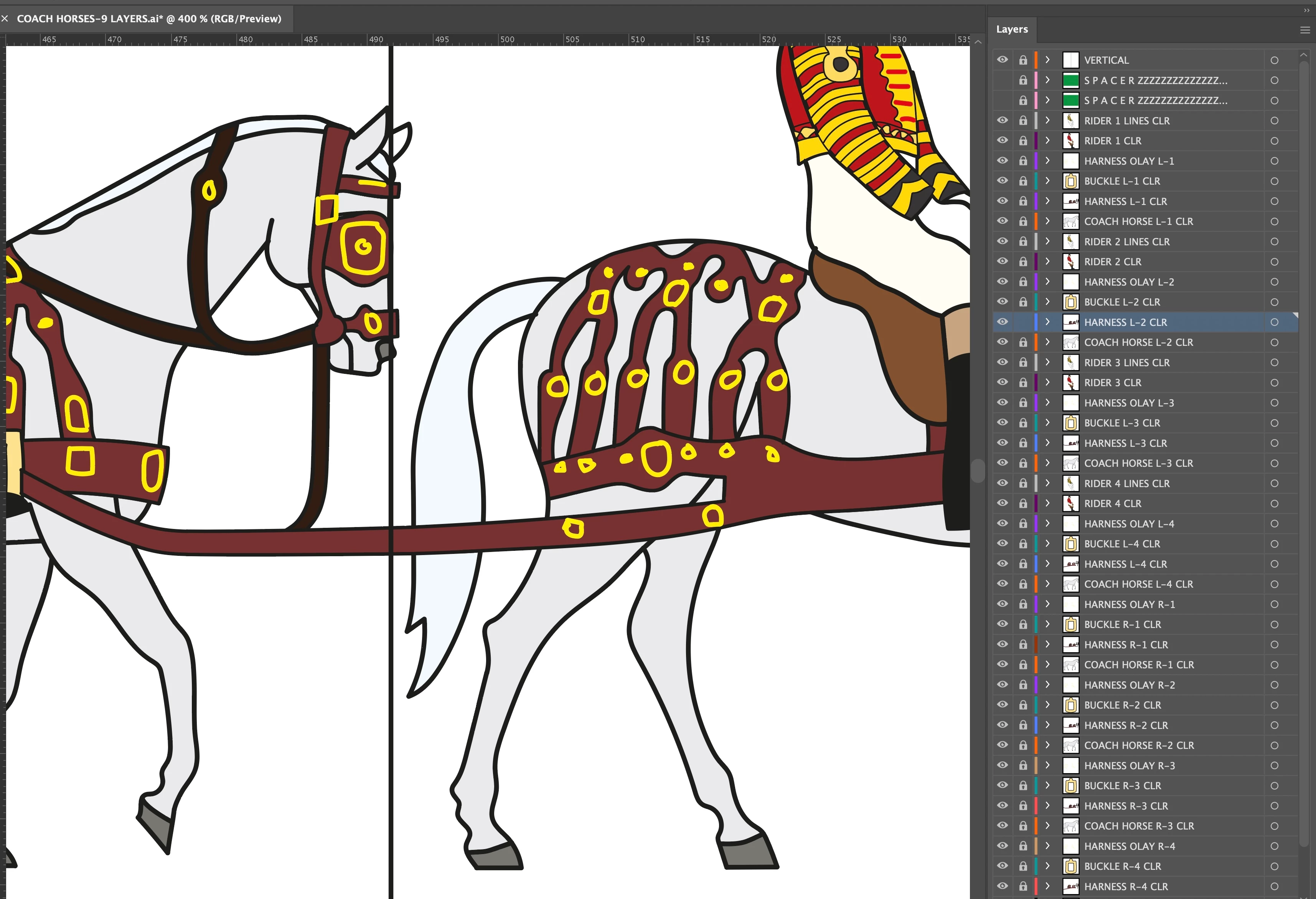 I am trying to use the knife tool to cut part of a design drawn with the pencil tool. Whatever I try does not work. I have attached a screenshot, showing where I am trying to cut across layer 'Harness L-2 Clr, where the vertical line is. I thought it would be simple, but I cannot make it cut. Grateful for any advice.