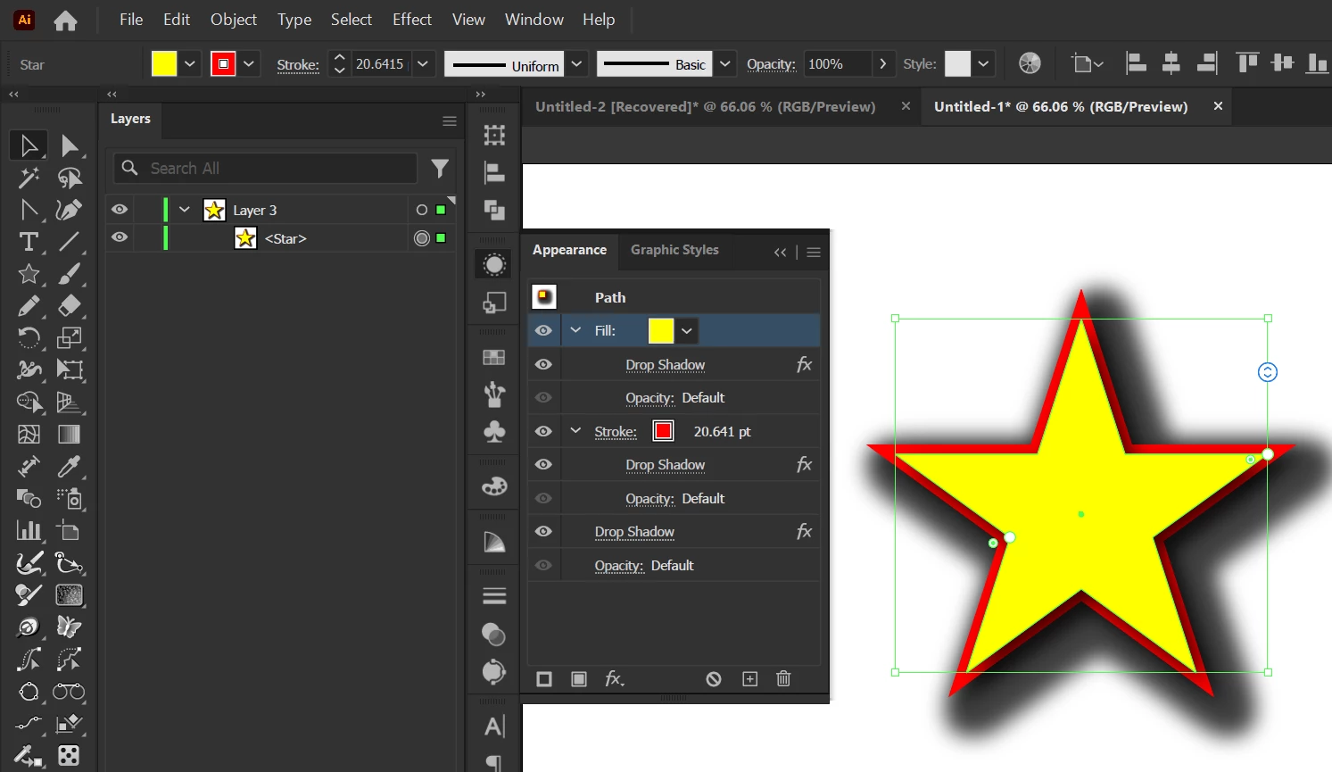 Object, Fill, and Stroke with drop shadow shows fx in the same row not in the top. Video also uploaded.