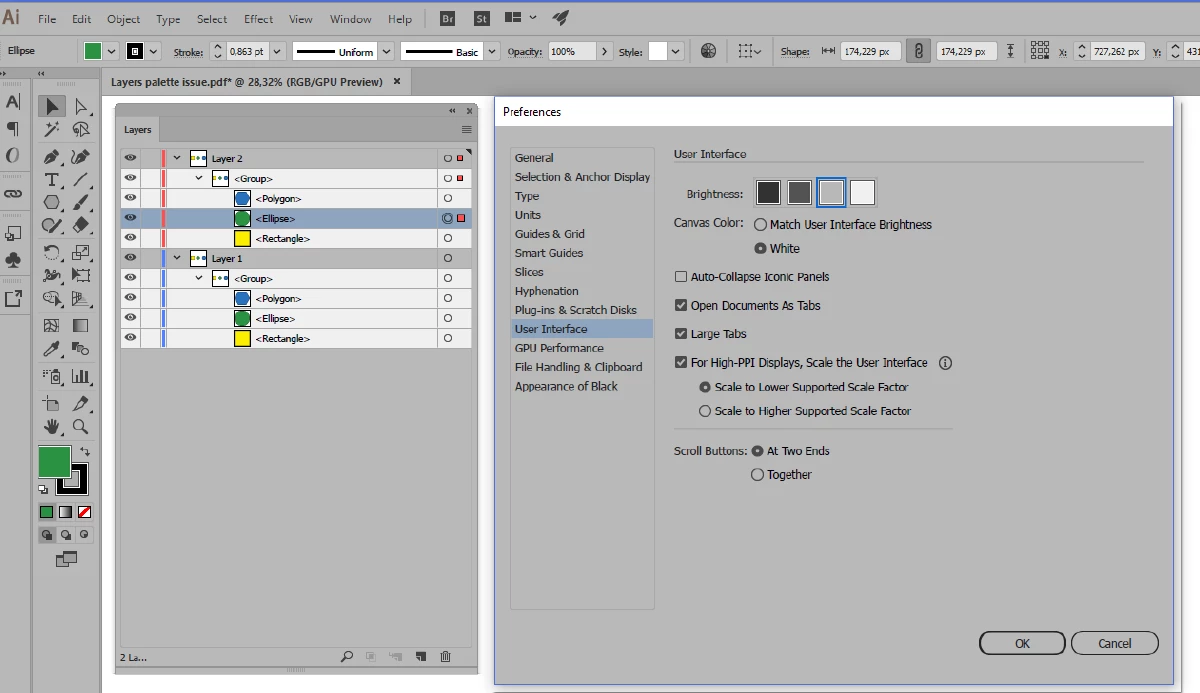 There is something weird going on indeed.... When adjusting settings in Preferences > User Interface