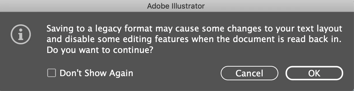 Legacy Warning message when saving my files