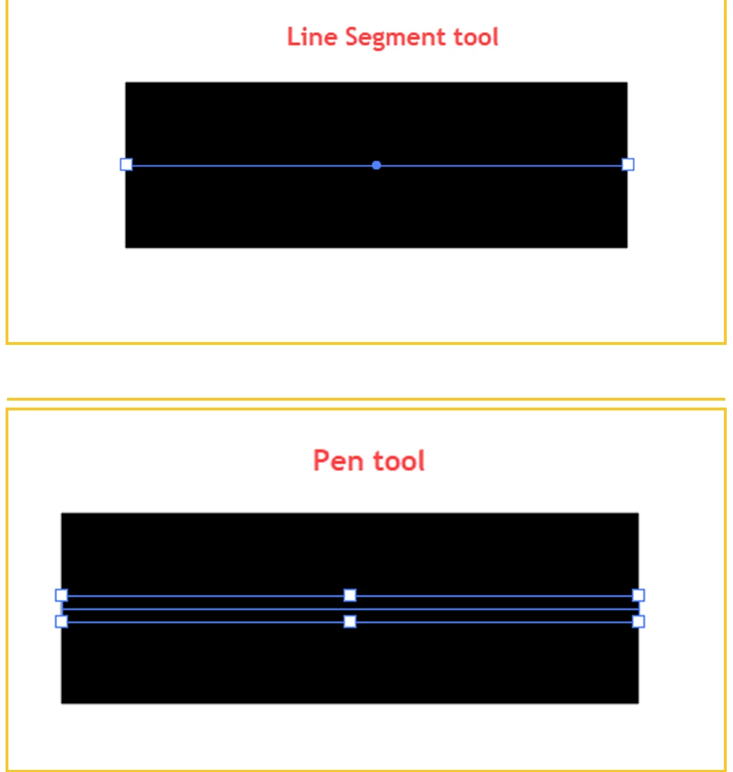 Line & Pen tool has been selected to draw a line with stroke. When highlighting what does purpose of line tool show just a line whereas Pen tool show a boundingbox?