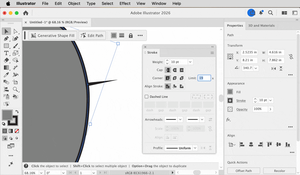 i have created this logo from another logo and joined it together using shapebuilder. when i size it down it creates a horrible issue with the “E”. i have checked layers and outline view and there is nothing to suggest there’s an error. help!