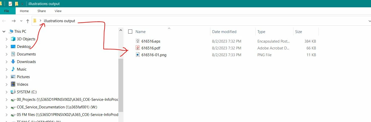 example : inside my illustration art board at bottom right corner there is a text with numbering 616516, i want the my illustrator file to be saved with file number 616516 in eps, pdf and png format, in a folder named illustrations output in desktop.