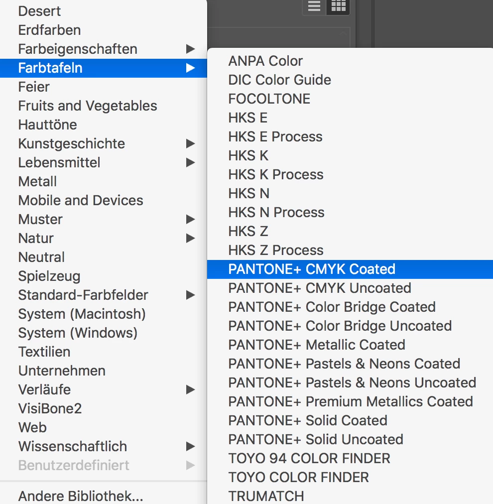 When i open the color librarys there are lots of pantone options - see screenshot below.