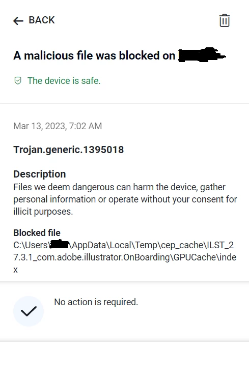 Today, I reopened a previously created ai file (adobe illustrator file). However, my installed antivirus detected a trojan (trojan.generic.13950