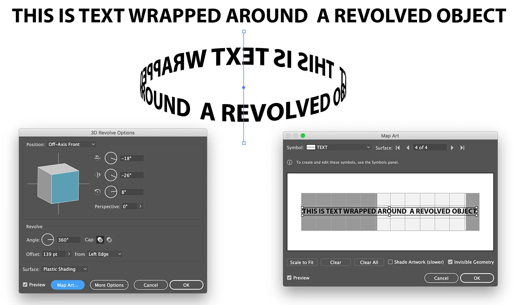 I simply need the logo wrapped around the surface of the cylinder - but not have the cylinder appear. From what I read - everyone says to use the Legacy 3D Revolve - but that doesnt work because the VECTOR logos get mangled. And I need to use vector vs raster.
