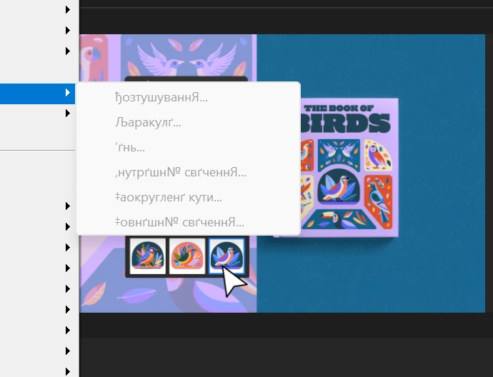 However, as soon as I log in to my Creative Cloud account, some menu items turn to glyphs instead of letters.