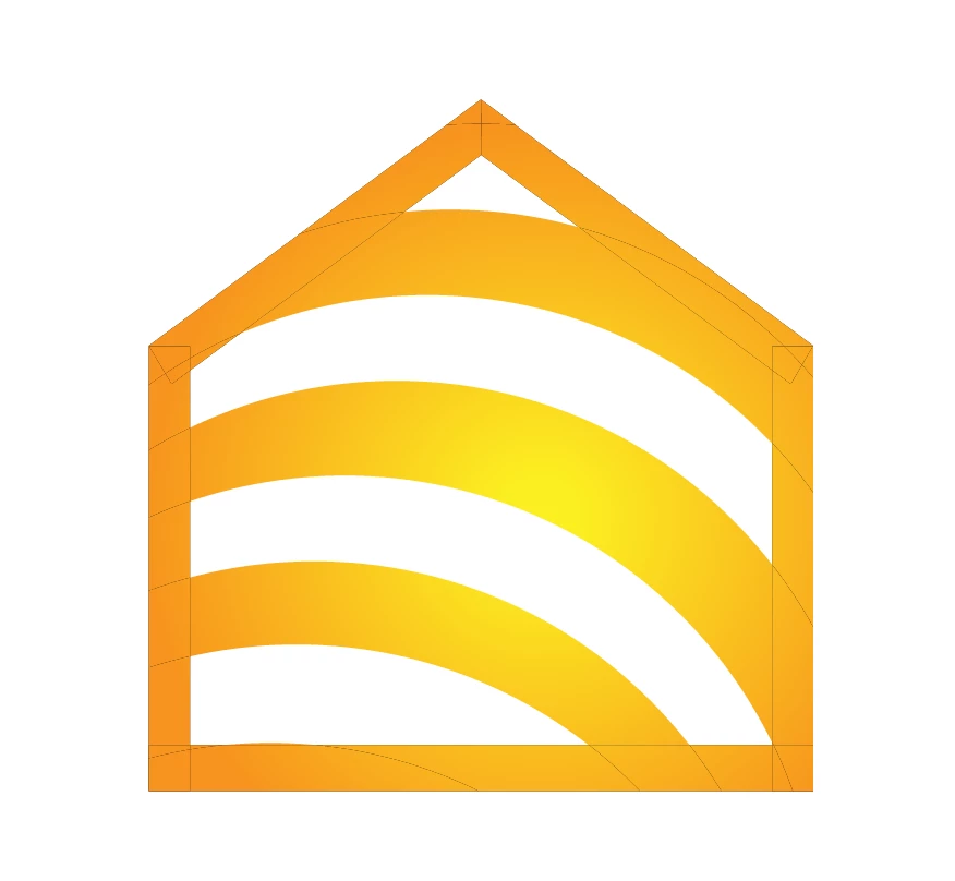 Trying to create a graphic where there's a gradient over a house-shaped object/outline. However I'm having issues with the lines of the individual pieces of said house to blend in with the rest of the sunset gradient (images attached). I need to either hide, merge or colour the lines to match the gradient so it all looks like a seamless graphic. How do I achieve this?