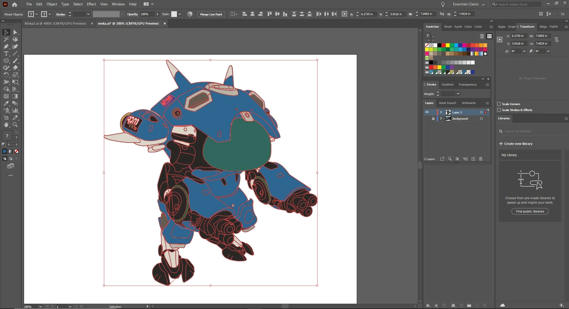 So i have this project that is due in the morning and we have to draw with the pen tool a clipart object of our favorite thing, so i did, then i added color and was about to use the mesh tool to make it 3d and shiny and such, but whenever i roll over to my shape my mouse has the error circle with a cross through it, i already brought it over to a different art board but that didn't work, perhaps it had something to do with colors or when i was messing with the gradient option earlier, but please help, i can't afford to redo this project from scratch and this is the last option i can think of.