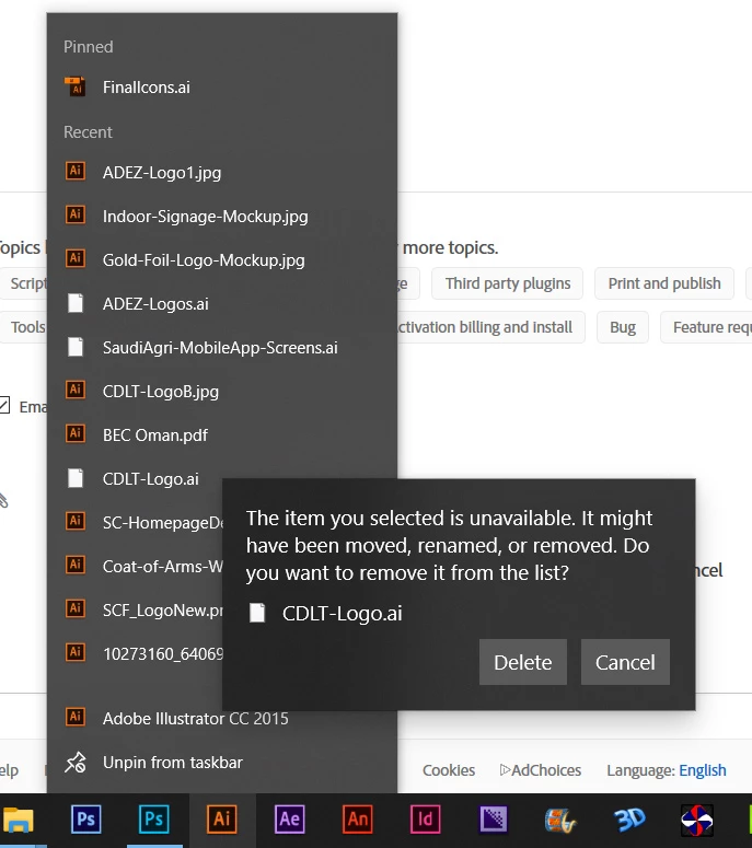Recently I came across this issue of missing .ai file links from taskbar right click recently opend files list.