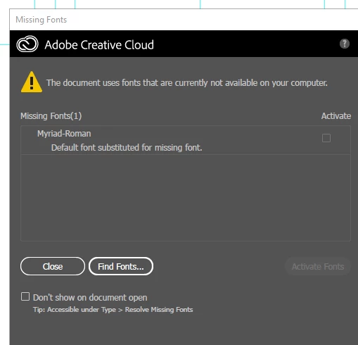 I've tried installing Myriad-Roman on my PC, and having people send me various fonts with an identical name, but I continue to get this pop-up. Is there a way I can get this to go away?