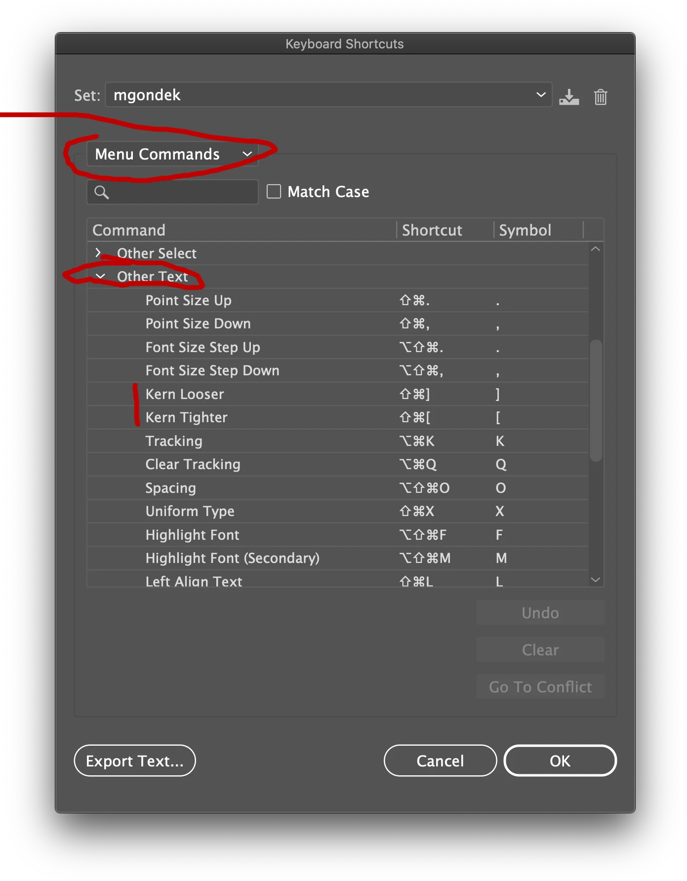 Modify Increase or decrease kerning & tracking with Alt/Opt + Right/Left Key shortcut in Illustrator