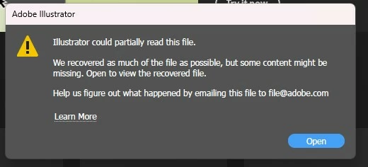 My Illustrator file shows there is data on file preview, but when opening, the data is not there