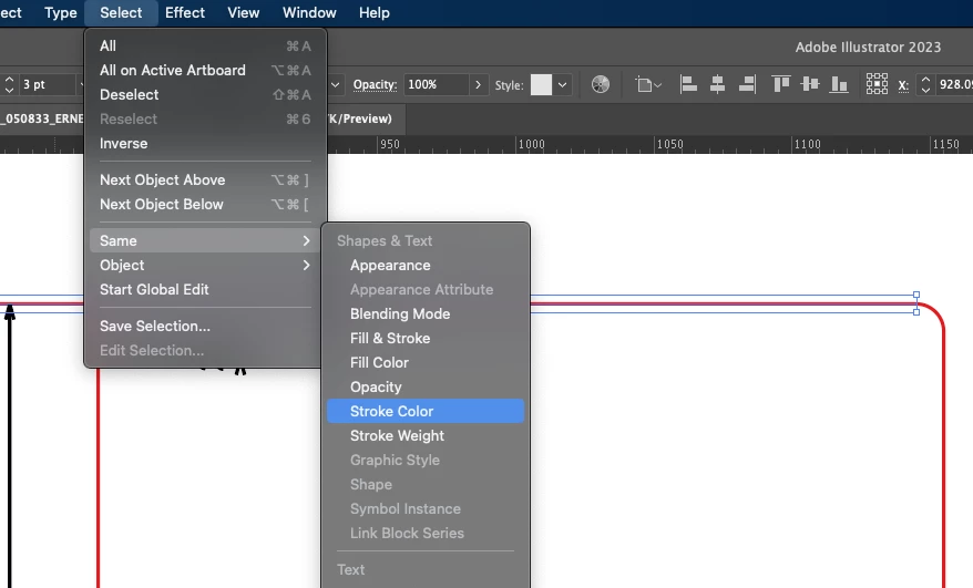 Select the cut line (CAD programs usually create segmented cutters, not compound paths that you can select), now go to Select > Same > Stroke Colour to select the entire cut path.