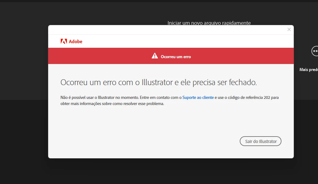Ocorreu um erro com o Illustrator e ele precisa ser fechado.