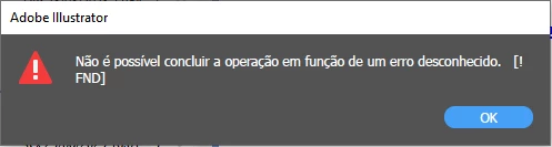 Após a última atualização do Illustrator ai, todas as vezes que tento abrir o software Adobe Illustrator exibe a seguinte mensagem"Não é concluir a operação em função de um erro desconhecido", pressiono "OK", a mensagem se repete e depois fecha.