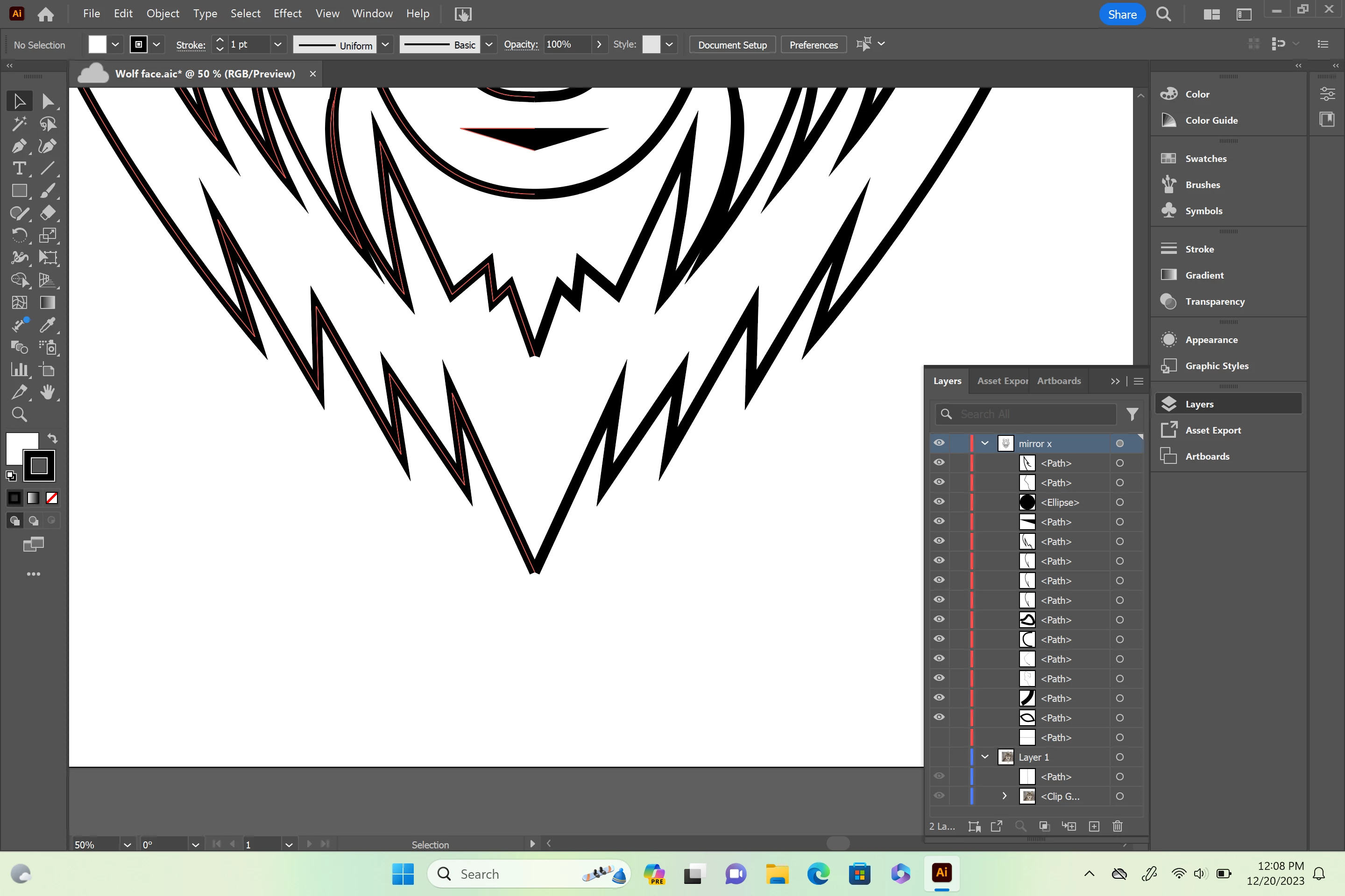 2) Object>Transform>Reflect (Vertical axis, as the default) as a Copy;