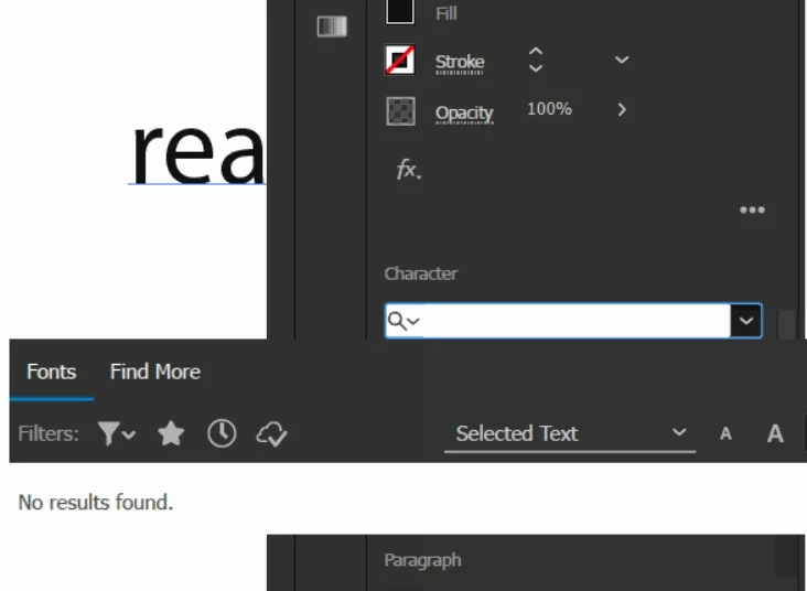 When i open up the font dropdown, there are no results, not even the adobe standard fonts.