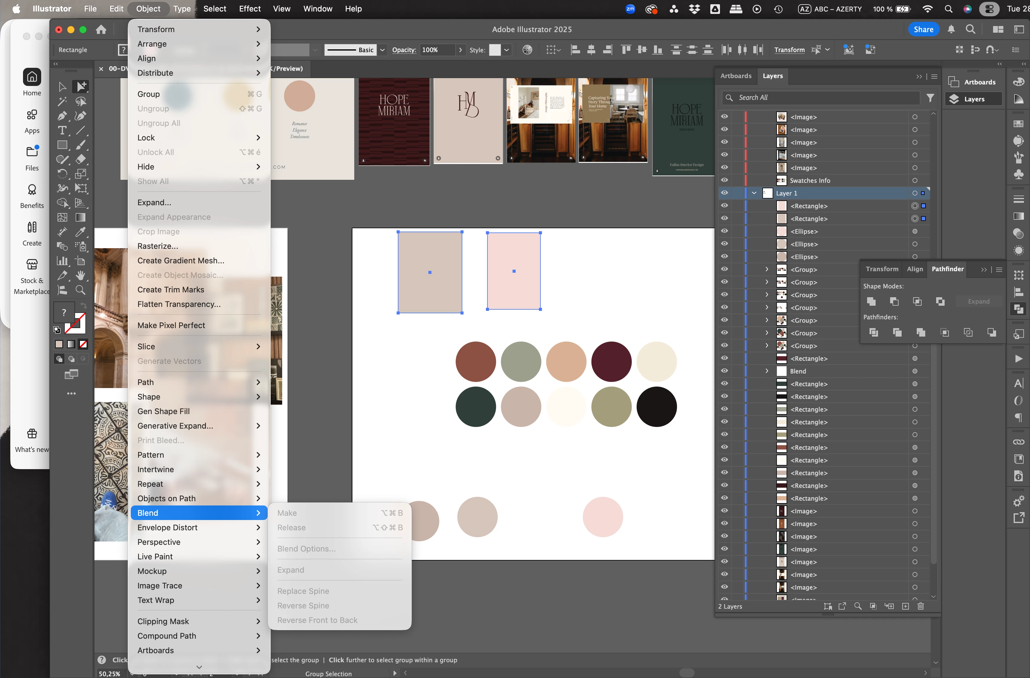 I selected 2 shapes in different colors to create a gradient, but when I click on Object > Blend, all the options are light grey, and I cannot select anything.