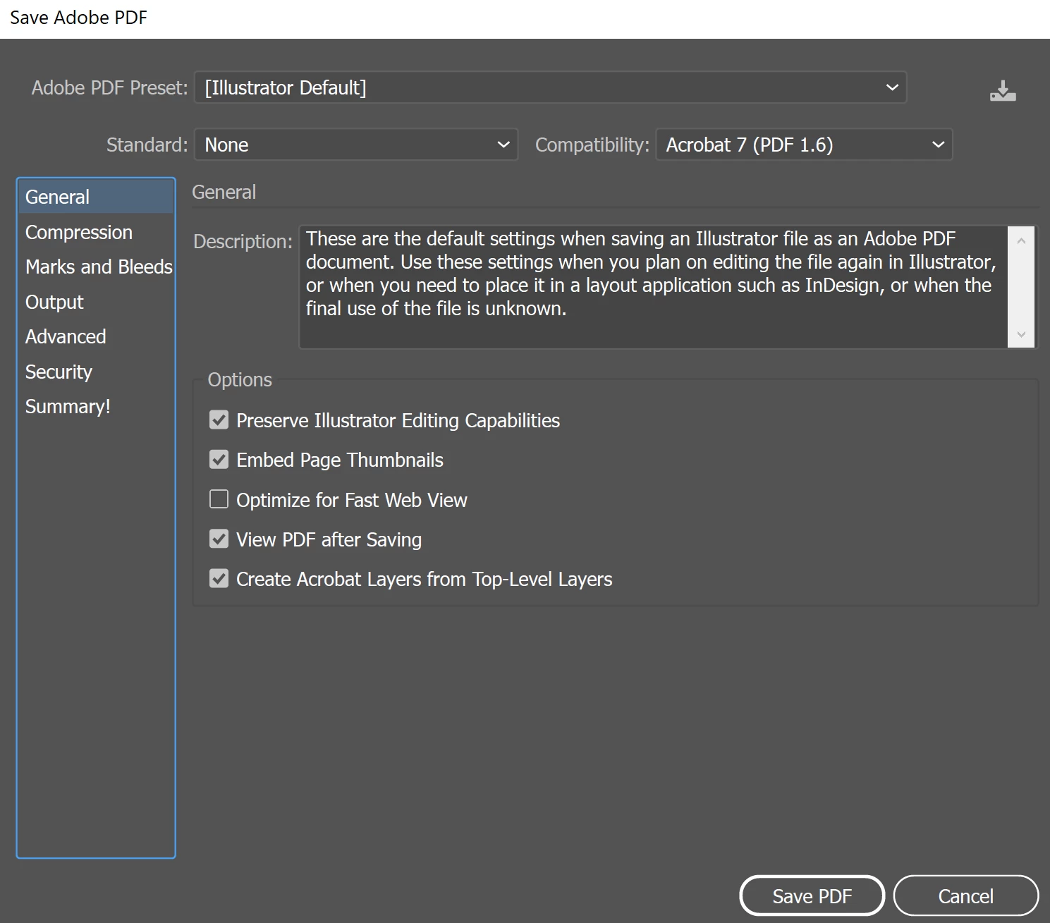 Adobe save settings -- I am not changing anything here