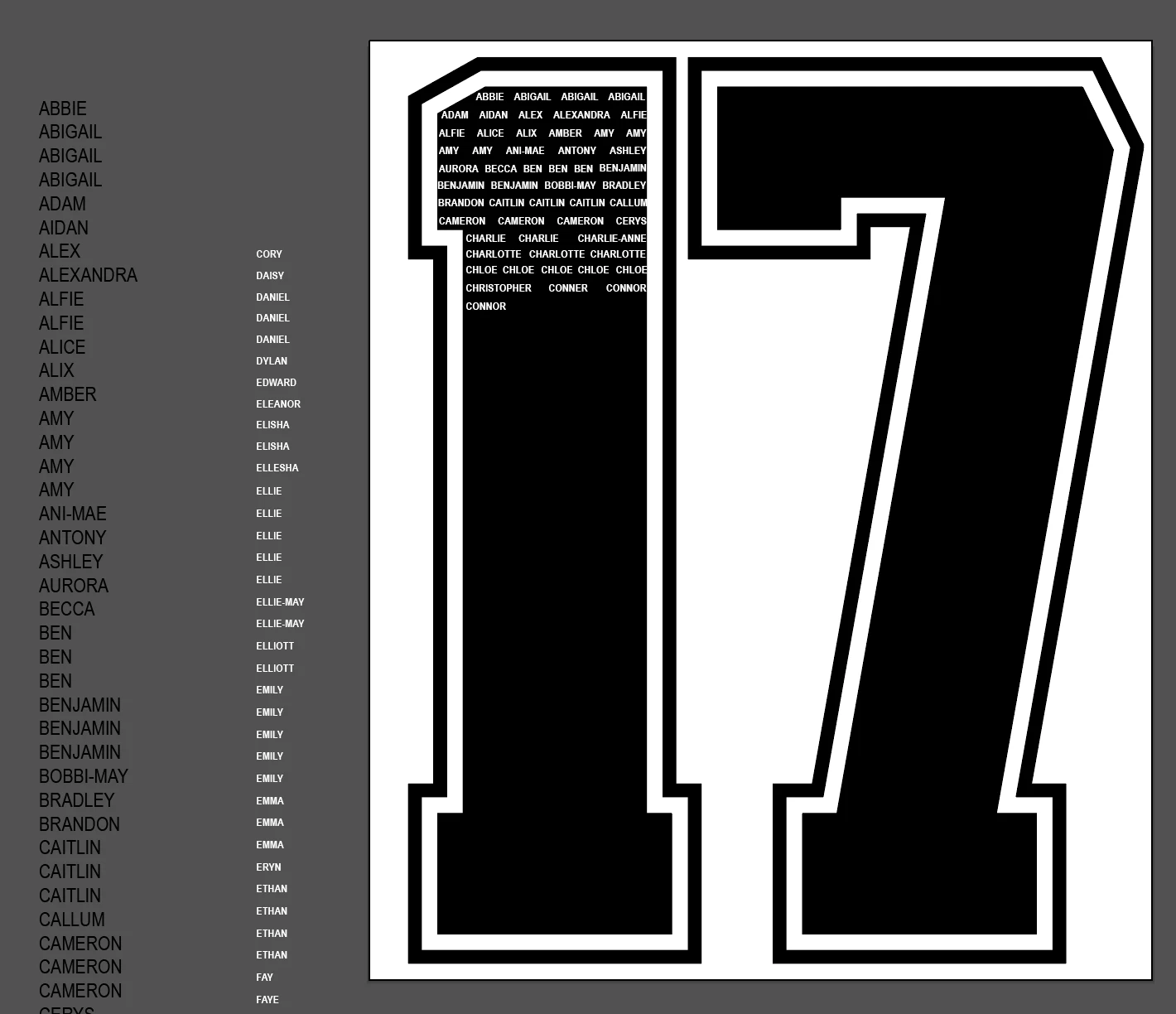 Eventually the names will be black and will form the shape of the 17 like in the second image.