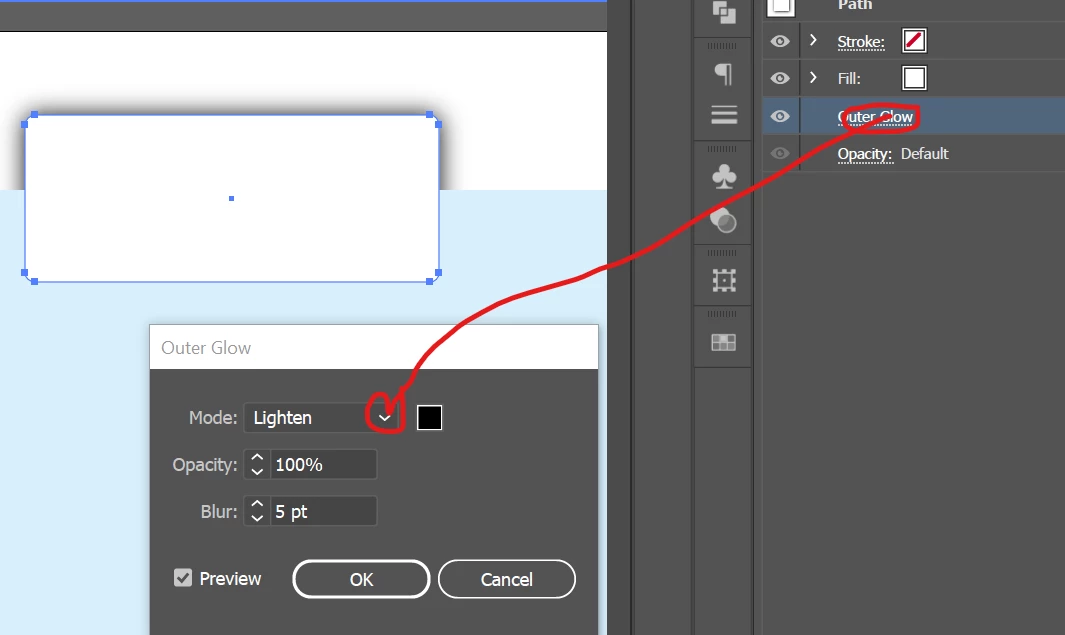 As you can see, when I move around the object on my artboard or beyond, the outer glow effect is visible. But when I release the object, or even when I export my artboard as JPEG or save as PDF, it is not visible. How do I fix this?