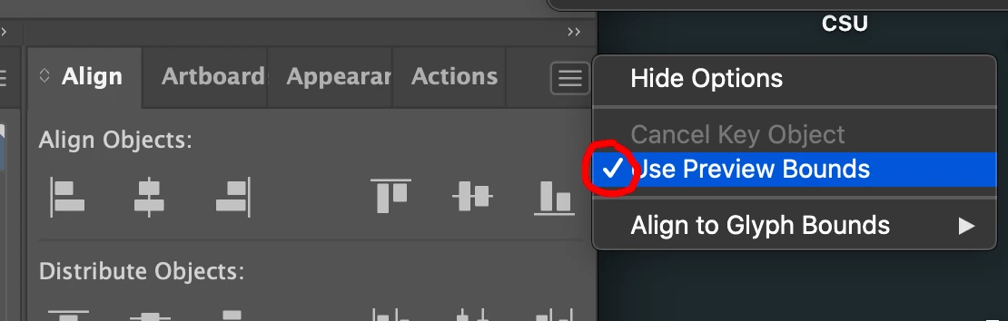 3. I tend to have an object like text that has already been created to outlines, with strokes applied in the appearance panel, and maybe a warp effect applied as well. The problem happens when I scale this object, then press undo. The undo doesn't work. What I get is something that looks like the warp shape will undo, but the text does not. So there's the warp's lines or bounding box which responded to the undo command, but the text visibly does not respond. If I go into the Appearance panel and remove Outline Object, it resolves itself immediately.