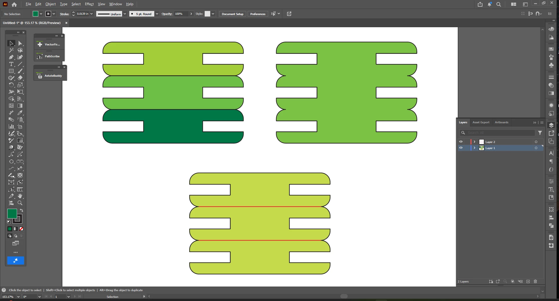 Outlining shapes to connect them creates unexpected "open" patterns
