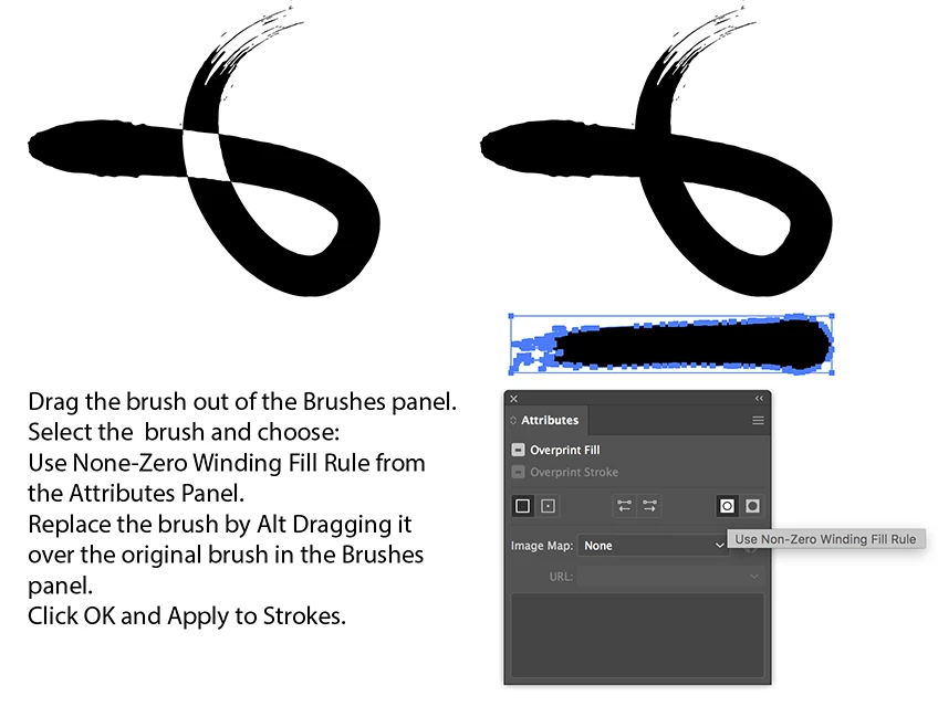 I purchased a brush pack and went to try it on an overlapping stroke but it created a white area. I looked up a solution and every single post was about changing the fill rule in the attributes panel to non-zero, which seemed to help everyone. I went to try that but the brushes seem to already be using that option. I really need to fix this please.