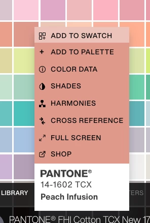 When I search for a specific Pantone color, therused to be a 3 dot dropdown on the colors to allow you to "Add to Pallet" or "Add to swatch" etc. That is no longer available. This only seems to be on searched colors. Has anyone else run into this?