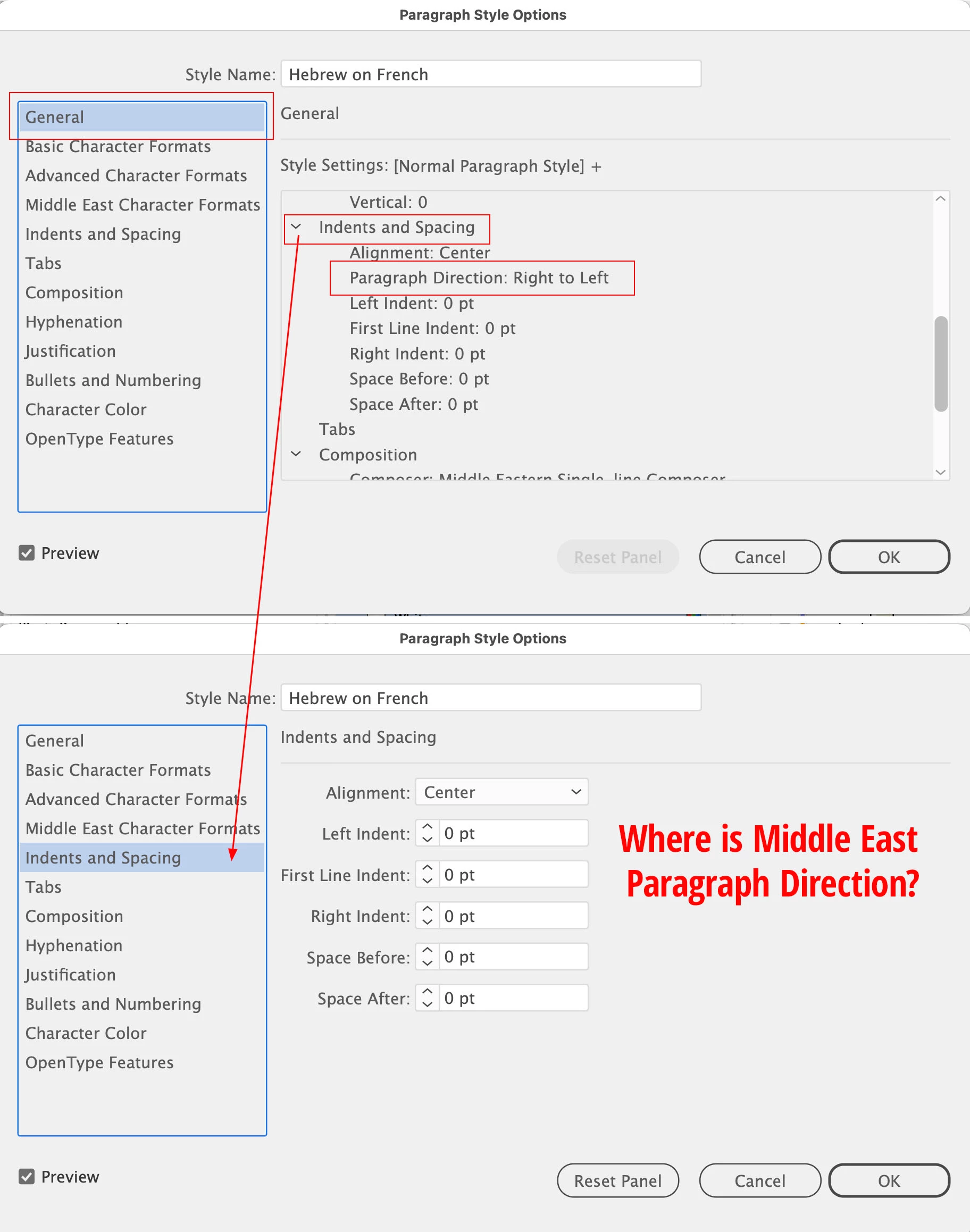Paragraph Styles: Where has Paragaph Direction for Middle Eastern Version gone? (AI ME 2024)