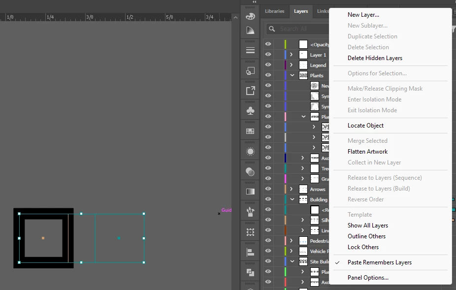I have selected the rectangle on the left which is from the "Building Proposals" > "Silhouette" layer and copy pasted it with "Paste Remember Layers" checked. However, it pasted to the parent layer "Building Proposals," not to the sublayer, which is where I want it.