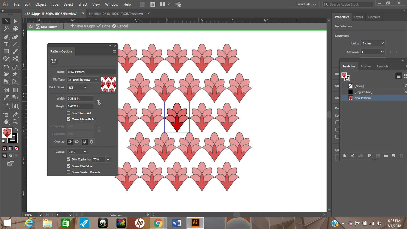 Very new to Illustrator. Made one pattern wanted to repeat it over 18 inch * 40 inch. Finding Difficulties