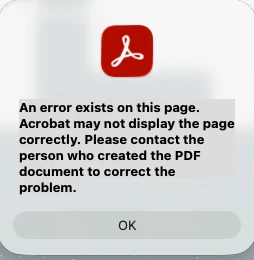 "An error exists on this page. Acrobat may not display the page correctly. Please contact the person who created the PDF document to correct the problem."