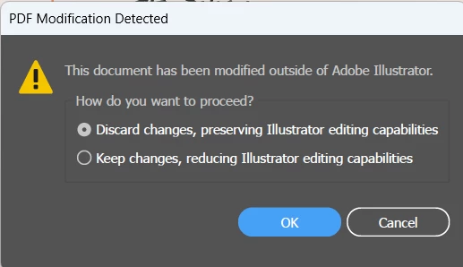 PDF modification detected- illustrator losing the changes and doesnt save open PDFS correctly