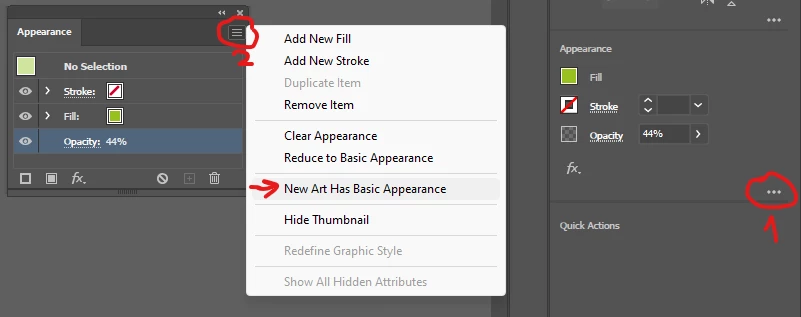 I'm using the pen tool to make green shapes at 50% opacity. Without anything selected, I set the pen color to green, and the opacity at 50%. But when I click to make the first point of my shape, the opacity shoots up to 100% again. While making the shape, I can go to the panel and set it back down to 50%, but after a dozen shapes this is quite tedious. Why does Illustrator set back the opacity? Can I turn that off somehow?