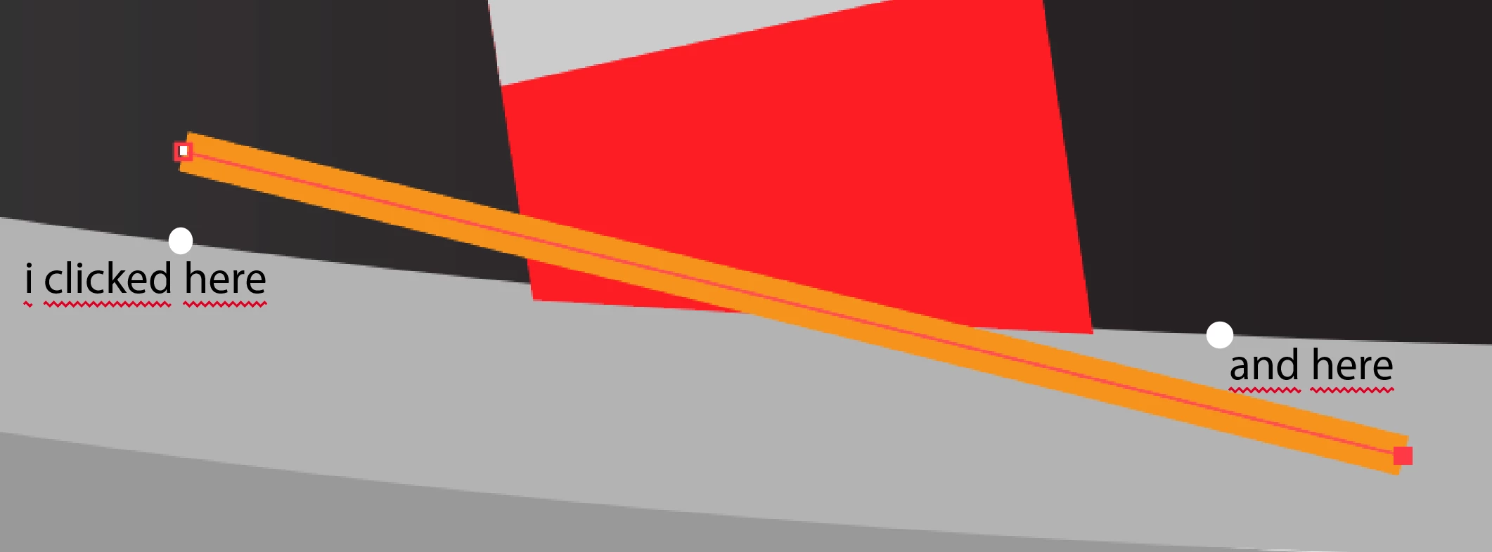 as you see in the photo- the white points is where i clicked with my mouse, but the line start and end at different points. please help me its really annoying and im new and just want to learn 😞