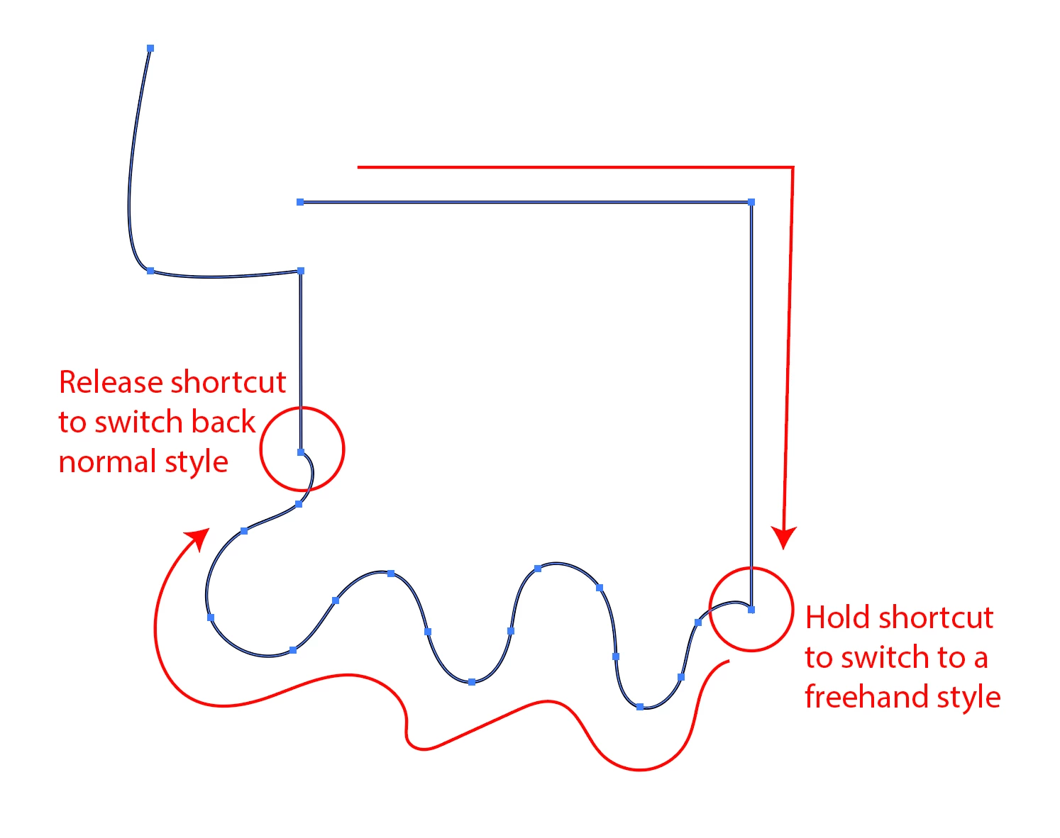 Pen Tool: shortcut for toggling between clicking nodes to a freehand drawing