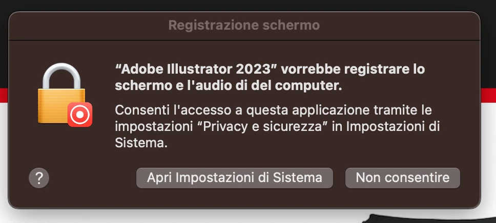 Permesso registrare schermo Adobe Illustrator 2023