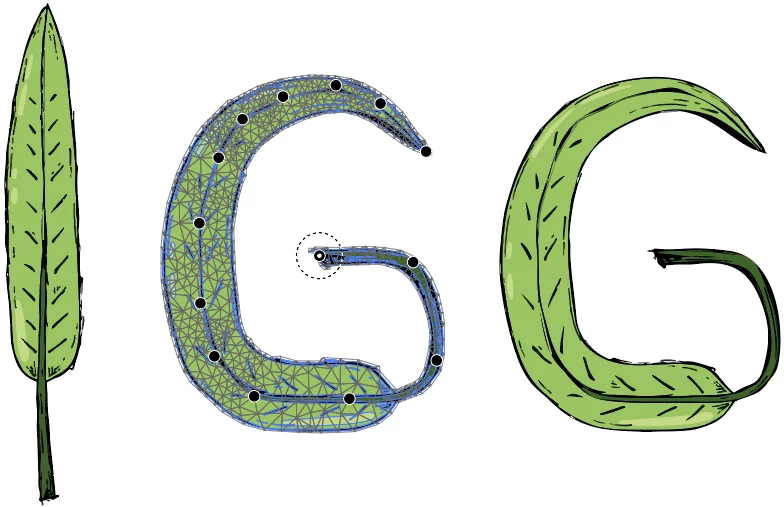 ich möchte dieses Blatt verkrümmen/verbiegen, sodass ich es "in etwa" in die Form des Buchstaben "G" bringen kann. Wie kann ich das Blatt verkrümmen/verbiegen? Ich finde keinen Weg und kein passendes
