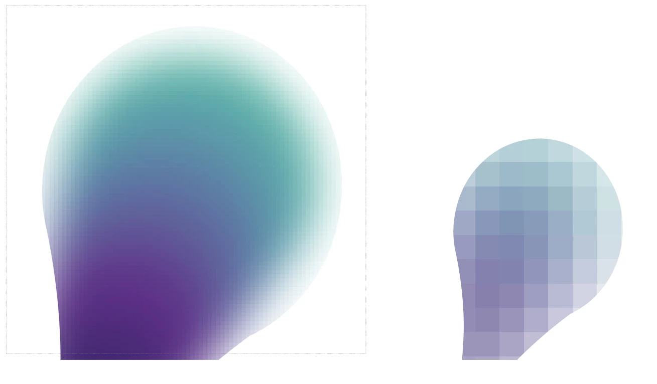 I was provided a logo from a client and need to add it to some packaging designs. The logo has a gradient using blurred layers and a clipping path. It appears pixelated at full resolution (Left in attached image) but becomes very bad when scaled down (right in attached image).