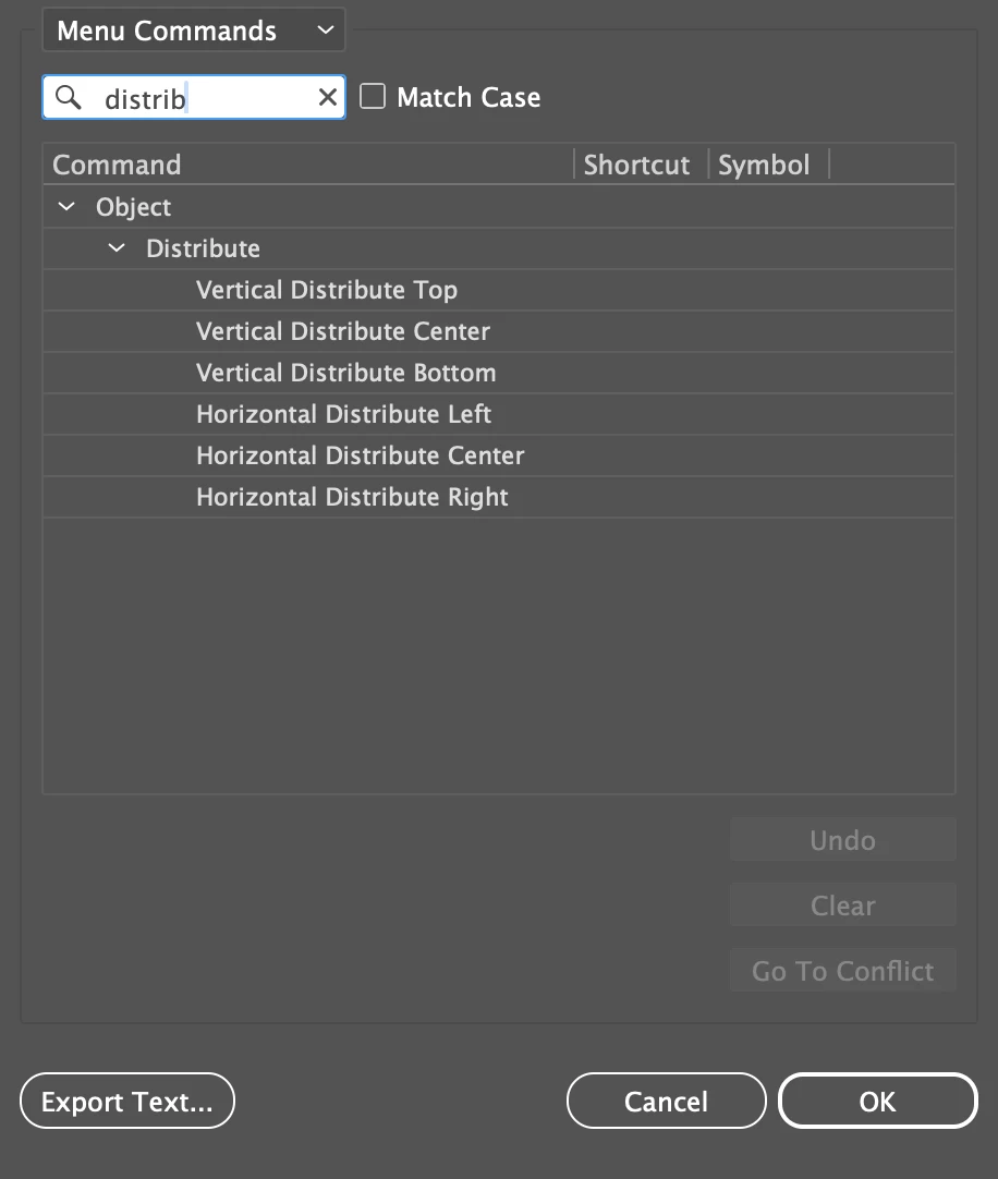 Distribute Spacing options not available in keyboard shortcut list – Adobe Illustrator