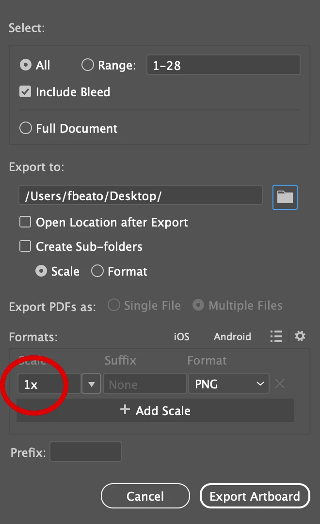 So if I have a document that’s 500×500 px and export it at 2×, the PPI changes to 144×144.