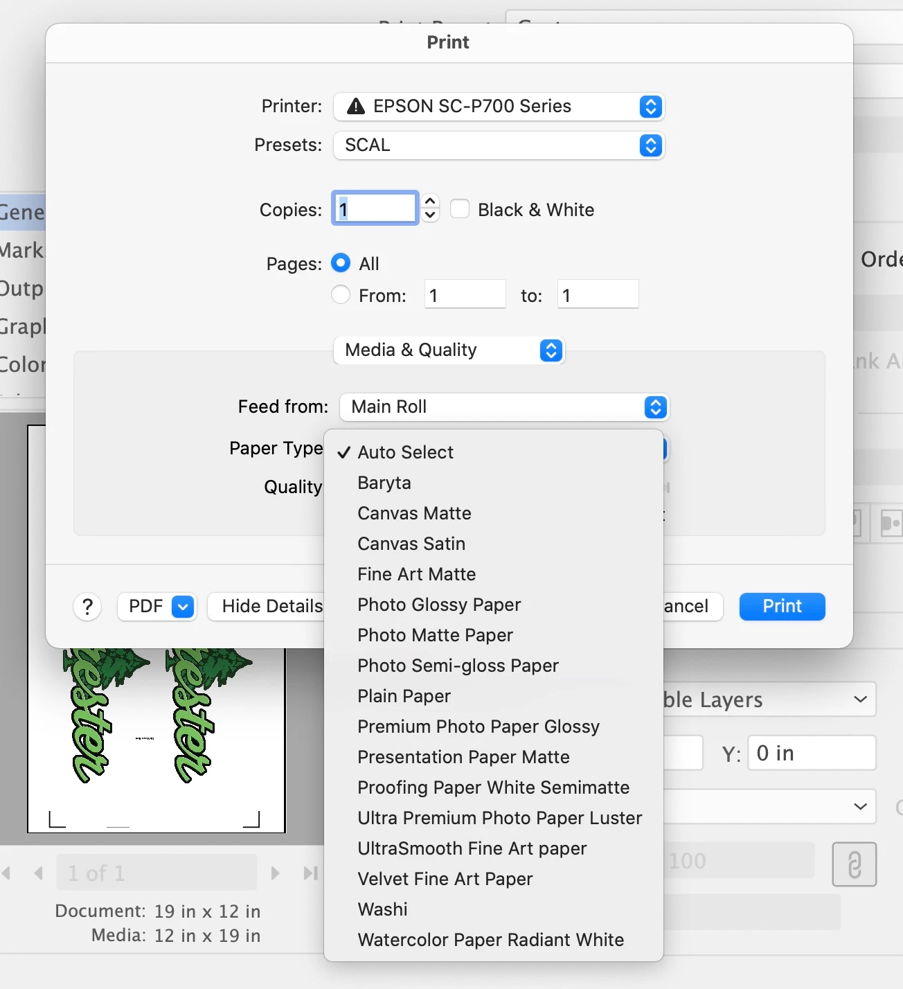 2) Setup - Printer settings-EpsonSC-P700 Series