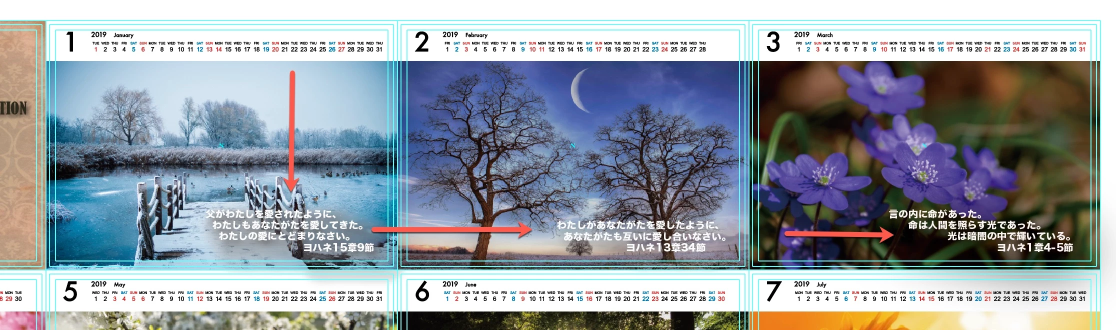 I am trying to line up text in the following document using guides (if that is possible, which I would expect it is in illustrator as it is in Photoshop) I next the text to be lined up for all 12 months of the year - 3 in the top layer and 4 in the remaining except the last of one only.