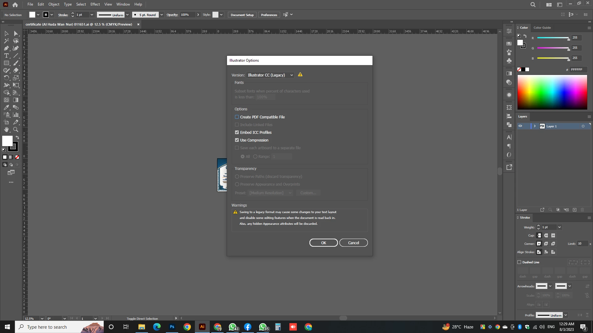 Problem with saving lagacy files on illustrator