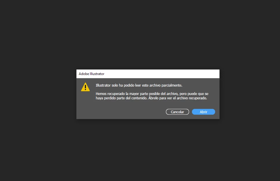 "Illustrator solo ha podido leer este archivo parcialmente