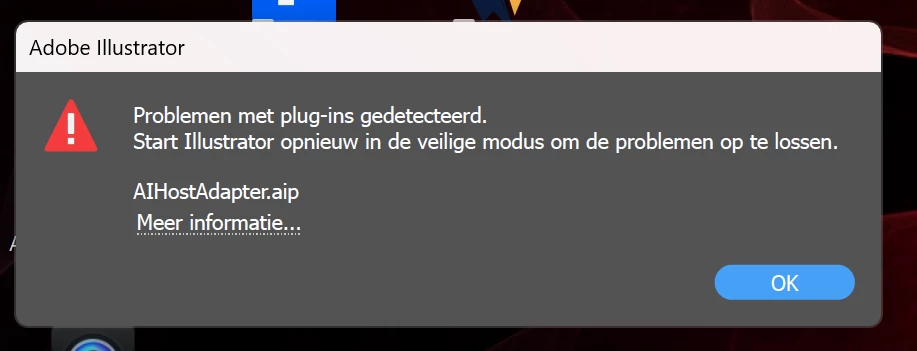 Kunnen jullie mij helpen ik heb al een paar dagen problemen met illustrator als ik hem opstart krijg ik steeds de melding: problemen met plugins gedecteerd